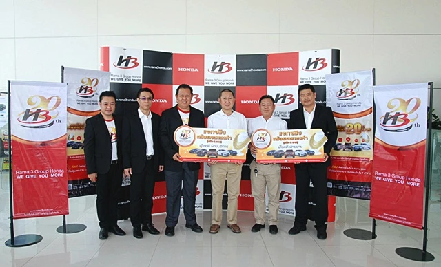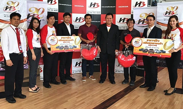 พระราม 3 กรุ๊ป ฮอนด้า จับจริง แจกจริงทุกเดือน จับรางวัลผู้โชคดี ครั้งที่ 1 ในแคมเปญ ฉลองยิ่งใหญ่ 20 ปี แจกทอง 20 บาท ประจำเดือนมีนาคม 2559 ในวันที่ 1 เมษายน ที่ผ่านมา ที่ พระราม 3 กรุ๊ป ฮอนด้า สาขา สาธุประดิษฐ์ โดยผู้โชคดีทั้ง 2 ท่าน ได้รับรางวัล สร้อยคอทองคำหนัก 1 บาท แบ่งออกเป็น 2 รางวัล ฝ่ายขาย ได้แก่ คุณ นเรศ แสงม่วง และ ผู้โชคดี ฝ่ายบริการ ได้แก่ คุณ สมศักดิ์ ไกรกาบแก้ว