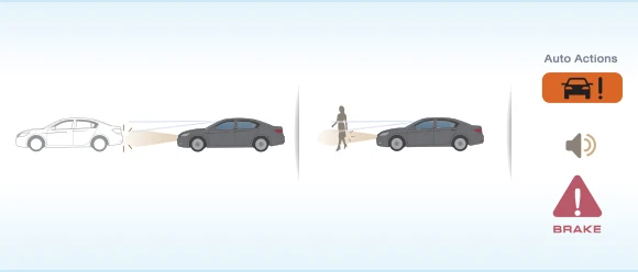 ระบบเตือนการชนด้านหน้าและตรวจจับคนเดินถนนด้วยกล้องและเรดาร์พร้อมระบบช่วยเบรก
