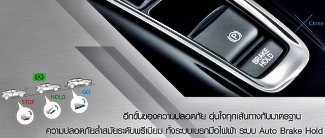 ฮอนด้า ผู้นำด้านเทคโนโลยีระบบเบรกอัตโนมัติพร้อมระบบช่วยเบรกเมื่อจอดสนิท ป้องกันการไหลโดยไม่ตั้งใจ หรือ Brake Hold ที่ติดตั้งใน Honda HR-V ใหม่ ระบบนี้นอกจากจะใช้จอดรถกันไหลแบบเดียวกับเบรกมือทั่วไปแล้ว ยังสามารถเป็นระบบเบรกชั่วคราวเมื่อจอดรถติดไฟแดงหรือจอดไม่นาน โดยไม่ต้องแช่เท้าที่เบรก เพียงแตะคันเร่งเท่านั้น รถก็จะสามารถขับต่อไปได้ทันที ใช้งานง่ายๆ เพียงกดปุ่ม Brake Hold เท่านั้น และเมื่อยกเลิกก็เพียงกดอีกครั้งให้สัญญาณบนหน้าปัดดับลง หนึ่งในเทคโนโลยีที่ฮอนด้าใส่ใจเพื่อความใช้งานที่สมบูรณ์แบบที่สุด