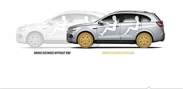 ระบบกระจายแรงเบรก (EBD) กระจายแรงเบรกให้สมดุลกับแต่ละล้อ ช่วยหยุดรถได้ในระยะทางที่สั้นลง