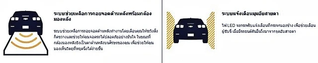 ระบบช่วยเตือนการจราจรที่ด้านหลัง ขณะถอยรถ ได้รับการออกแบบมาเพื่อยกระดับทัศนวิสัยของลูกค้า โดยทำงานร่วมกับระบบกล้องมองหลังเพื่อตรวจจับสภาพการจราจรเมื่อกำลังถอยหลังออกจากช่องจอด ถ้าระบบตรวจจับว่าถนนด้านหลังรถมีวัตถุเคลื่อนที่เข้ามาใกล้ อาทิ เด็กที่กำลังปั่นจักรยาน สัญลักษณ์รูปสามเหลี่ยมสีแดงจะปรากฏขึ้นบนหน้าจอถอยหลังด้านที่มีวัตถุเคลื่อนที่ พร้อมกับเสียงเตือนจากลำโพงด้านที่มีวัตถุเคลื่อนที่