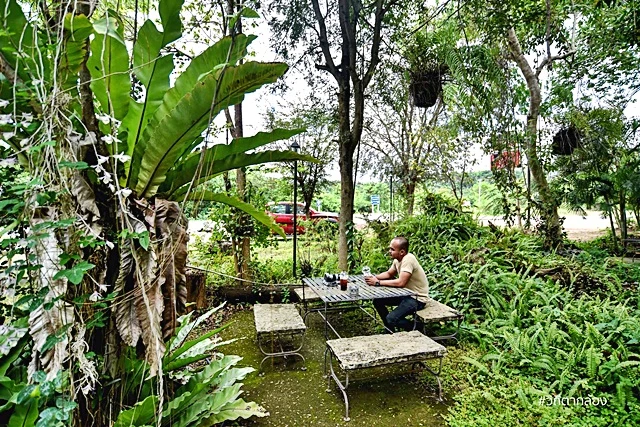 นั่งกินกาแฟหมดไปคนละแก้ว แล้วยังไม่อยากลุกไปไหน ร้านร่มเย็นต้นไม้เยอะ อยากนั่งนานๆ