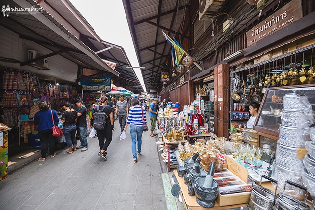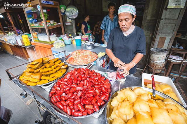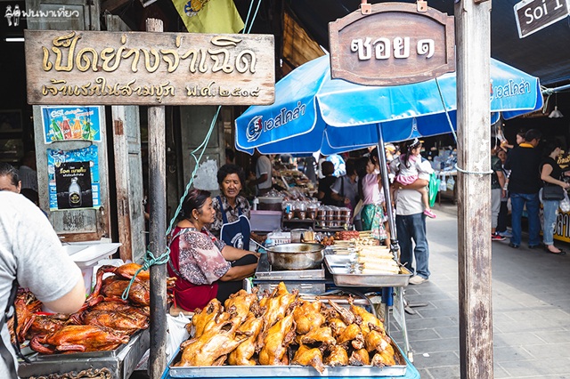 คนอื่นมาที่นี่ทำอะไรกันไม่รู้ แต่นุ้ยมาเพื่อกิน เป็นตลาดที่คึกคักมาก คึกทั้งนักท่องเที่ยว แม่ค้า และของกิน ตลาดแห่งนี้เป็นห้องแถวไม้อยู่ริมแม่น้ำ ท่าจีน ตลาดจะเปิดทุกวัน ไม่เว้นวันหยุด เริ่มตั้งแต่ 7.00 - 18.00 น.