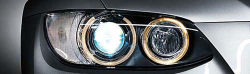 ระบบไฟซีนอน (Xenon) หรือ HID (High Indensity Discharge) ซึ่ง BMW เป็นบริษัทผู้ผลิตรถในยุโรป ได้คิดค้นหลอดไฟซีนอนเป็นเจ้าแรกเมื่อปี 1992 ก่อนที่ญี่ปุ่นจะเอามาติดรถบ้างในอีกไม่กี่ปี หลักการทำงานของไฟ Xenon ก็คล้ายๆ หลอดไฟนีออน อาศัยการอาร์กของขั้วไฟฟ้าภายในกระเปาะแก้วที่บรรจุสารต่างๆ 3 ชนิดคือ ปรอท เมททัลฮาไลด์ และก๊าซซีนอน ซึ่งการอาร์กจะต้องใช้แรงดันไฟฟ้าสูงประมาณ 20,000 โวลต์ จึงจำเป็นต้องมีชุดแปลงแรงดัน ไฟฟ้า และชุดควบคุม ในการรักษาระดับแรงดันไฟฟ้าให้คงที่ ดังนั้นหลอดซีนอนจึงไม่สามารถที่จะนำไปเปลี่ยนแทนหลอด Halogen ได้ แต่ถ้าจะเปลี่ยนทั้งชุดก็สามารถทำได้ แต่ราคาสูงมาก