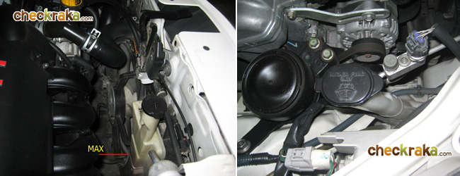 หากเปิดฝากระโปรงดูได้ก็ยิ่งดีครับ สังเกตุด้วยตาเปล่าว่ามีคราบน้ำหรือน้ำมันซึมหรือไม่
