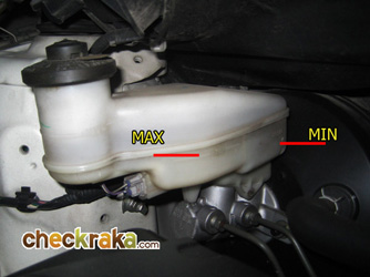 การตรวจระดับน้ำมันเบรกหรือคลัตช์ ให้สังเกตุระดับน้ำมันต้องอยู่ในเกณฑ์ระหว่างขีด MAX กับ MIN ถ้าต้องเติม ควรใช้น้ำมันเบรกให้ตรงเกรด โดยสังเกตุจากฝาปิดด้านบนหรือในคู่มือรถ ส่วนการถ่ายน้ำมันเบรกทั้งระบบมักทำกันหลังหน้าฝน เพราะความชื้นในอากาศมักส่งผลต่อคุณภาพของน้ำมันเบรก