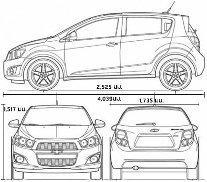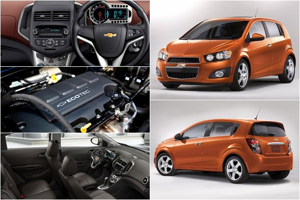 | Chevrolet Sonic | เบนซิน 4 สูบ 1,398 ซีซี DOHC16 วาล์ว แปรผันคู่ 100 แรงม้า แรงบิด 130 นิวตัน-เมตร รองรับE20 ระบบเกียร์ 6 AT/5 MT ขับเคลื่อนล้อหน้า | หน้า-แม็คเฟอร์สันสตรัท, เหล็กกันโคลง หลัง-ทอร์ชั่นบีมรูปตัววี พวงมาลัยไฮดรอลิก เบรกหน้าดิสก์/หลังดรัม | ยาว 4,039 มม. กว้าง 1,735 มม. สูง 1,517 มม. ฐานล้อ 2,525 มม. รัศมีวงเลี้ยว 5.3 ม. | อัตราสิ้นเปลืองเฉลี่ยในเมือง 11-12 กม./ลิตร ความเร็วสูงสุด 177 กม./ชม. | รูปทรงสไตล์ยุโรป, ไฟหน้าแบบ 4 ดวง, ที่เปิดประตูคู่หลังอยู่ตรงเสาซี, มาตรวัดสไตล์บิ๊กไบต์ |