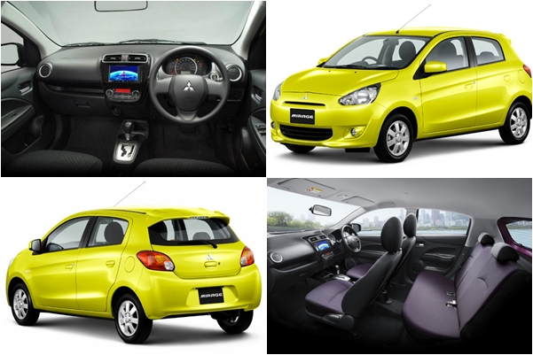 | Mitsubishi Mirage | เบนซิน 3 สูบ 1,193 ซีซี DOHC12 วาล์ว MIVEC 78 แรงม้า แรงบิด 100 นิวตัน-เมตร รองรับ E20 ระบบเกียร์ CVT/5 MT ขับเคลื่อนล้อหน้า | หน้า-แม็คเฟอร์สันสตรัท,เหล็กกันโคลง หลัง-ทอร์ชั่นบีม พวงมาลัยไฟฟ้า เบรกหน้าดิสก์/หลังดรัม | ยาว 3,710 มม. กว้าง 1,665 มม. สูง 1,490 มม. ฐานล้อ 2,450 มม. รัศมีวงเลี้ยว 4.4 ม. | อัตราสิ้นเปลืองเฉลี่ยในเมือง 15-17 กม./ลิตร ความเร็วสูงสุด 169 กม./ชม. | ขนาดเล็กประหยัด, มีระบบตัดต่อกำลังระหว่างเข้าเกียร์ตำแหน่ง D เมื่อจอดนิ่ง |