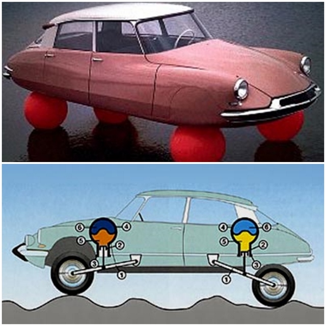 ไฮดรอนิวแมติก (Hydropneumatic Suspension) ได้ถูกนำมาใช้แทนที่ระบบกันสะเทือนขดลวดสปริงแบบดั้งเดิม โดยใช้วัตถุ 2 ชนิด ได้แก่ น้ำมัน และก๊าซไนโตรเจน กลไกการเคลื่อนที่ของส่วนต่างๆ ภายในระบบจะทำงานสัมพันธ์กับน้ำมันและ ก๊าซที่บรรจุไว้ภายในตุ้มรูปทรงกลมซึ่งทำหน้าที่เสมือนขดลวดสปริงนั่นเอง ระบบกันสะเทือนไฮดรอนิวแมติกนี้ให้ความนุ่มนวลในการขับขี่ดีเยี่ยม โดยความสูงของตัวรถจะไม่เปลี่ยนแปลง แม้จะบรรทุกน้ำหนักเท่าไรก็ตาม ทั้งนี้ต้องอยู่ในพิกัดน้ำหนักที่รถรุ่นนั้นรองรับได้ ซึ่งในยุคนั้นทางบริษัทผู้ผลิตได้มีการคุยเอาไว้ด้วยว่ารถยนต์รุ่นนี้สามารถวิ่งต่อไปได้แม้เหลือเพียง 3 ล้อ โดยที่ตัวรถไม่เอียง!