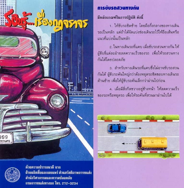 - เปิดสัญญาณไฟเลี้ยวด้านซ้ายเพียงข้างเดียวเป็นการสื่อให้ขับแซงขึ้นไปได้