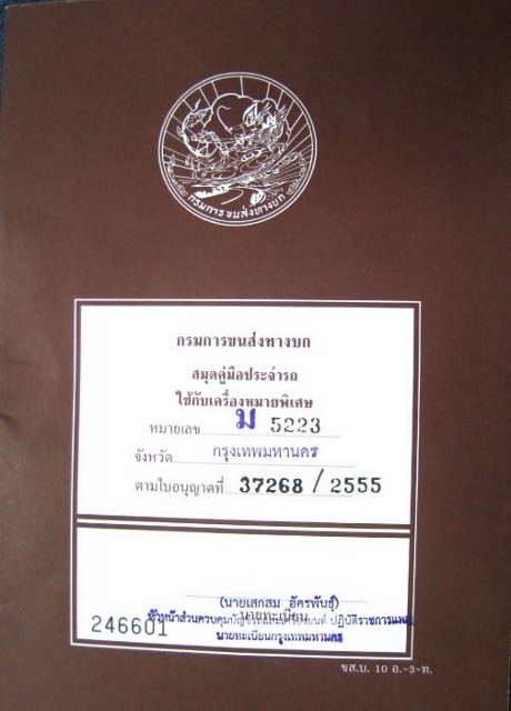 สมุดคู่มือประจํารถ ใช้กับเครื่องหมายพิเศษ(ป้ายแดง) ตามพระราชบัญญัติรถยนต์ พ.ศ.2522