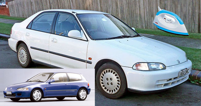 Honda Civic - เตารีด/EG/3Door ฮอนด้า ซีวิคโฉมนี้เป็นรุ่นยอดฮิตติดชาร์จอันที่หนึ่งของกลุ่มวัยรุ่นในยุคนั้นที่นำมาจับแต่งมากที่สุด และจากรหัสตัวถังที่ใช้คือ EG ทำให้คนในวงการจึงใช้เรียกรุ่นนี้ไม่ว่าจะเป็นแบบ 3 หรือ 4 ประตู แต่หากรุ่น 3 ประตูมักถูกเรียกอีกแบบว่า 3 Door มากกว่าเพราะเป็นรถแบบ 3 ประตูชัดเจนกันไปเลย แต่ที่น่าฉงนคือ มีการเรียกว่ารถรุ่นนี้ว่า "เตารีด" ซึ่งบางมุมก็ดูคล้ายอยู่บ้าง และก็กลายเป็นลัญลักษณ์ของรถรุ่นนี้ไปโดยปริยาย แต่จริงๆ แล้วดูเหมือนว่า รุ่นตัวถัง EF น่าจะเหมือนเตารีดมากกว่านะครับ