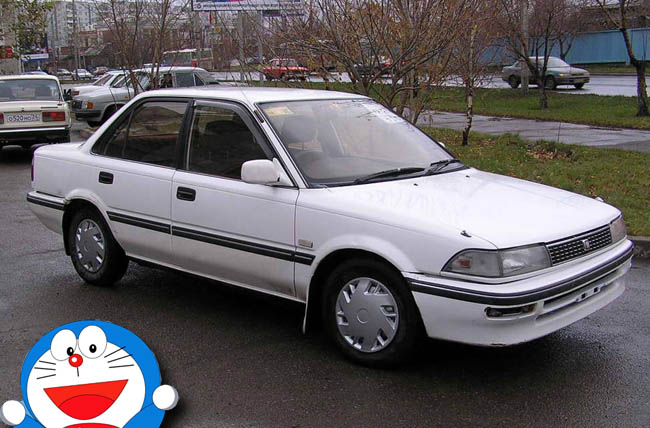 Toyota Corolla - โดเรมอน โตโยต้า โคโรล่า โฉมแบนก่อนเปลี่ยนโลโก้เป็นแบบ 3 ห่วง ซึ่งมีที่มาหลากหลายกระแสว่าฉายานี้มาจากความอเนกประสงค์ของรถรุ่นนี้ที่หาอะไหล่ง่ายมีทุกชิ้นเหมือนกับกระเป๋าของโดเรมอนที่มีของทุกอย่างได้ดั่งใจ ส่วนอีกกระแสหนึ่งก็บอกว่ามาจากภาพวาดในหนังสือการ์ตูนโดเรมอนจะมีรถรุ่นนี้ปรากฏอยู่ในหลายๆ ตอน จึงทำให้ผู้อ่านจำได้ และเรียกกันต่อๆ มาว่ารุ่น "โดเรมอน" สำหรับโคโรล่ายังมีชื่อเรียกในอีกหลายรุ่น เช่น สามห่วง (AE101) ตูดเป็ด (AE111) เป็นต้น