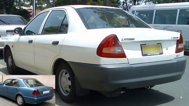 Mitsubishi Lancer - ท้ายเบนซ์ มิตซูบิชิ แลนเซอร์ รุ่นต่อจากยุคของอีคาร์ หนึ่งในจุดเด่นหลักที่จำง่ายนั่นคือ ไฟท้ายที่ละม้ายคล้ายกับเมอร์เซเดส เบนซ์ รุ่น C-Class W202 โดยบังเอิญ (หรือเปล่า) จึงเป็นชื่อเรียกที่รับรู้กันในวงกว้างว่าเป็นแลนเซอร์โฉมนี้