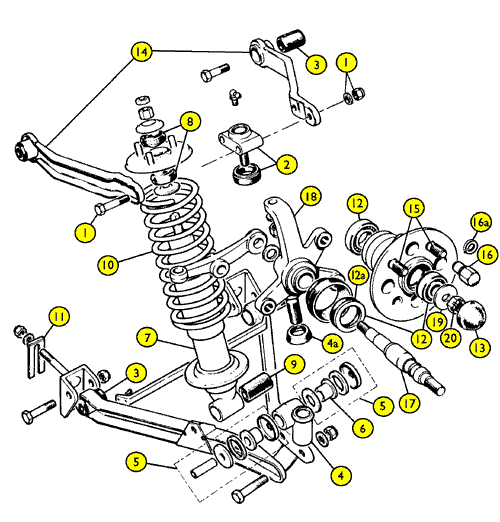 การซ่อมบำรุง - หากตรวจพบบูชปีกนกหน้า-ลูกหมากจุดข้อต่อต่างๆ หลวมเสื่อมสภาพควรเปลี่ยนใหม่ ในส่วนของโช้กอัพหากเป็นรอยมีวิธีซ่อมแซมเบื้องต้นคือ เข้าร้านซ่อมโช้กอัพเพื่อถอดเปลี่ยนแกนโช้กที่เป็นรอยออกและใส่แกนอันใหม่ (ของเก่าที่สภาพยังดีอยู่) แทนและอัดน้ำมันโช้กในระดับความหนืดเท่ากับเดิม วิธีนี้ต้องเสี่ยงในเรื่องของฝีมือช่างพอสมควร ดังนั้นควรศึกษาร้านซ่อมโช้กอัพที่เชื่อถือบอกขั้นตอนการซ่อมอย่างละเอียด และมีระยะเวลารับประกันงานซ่อมนานๆ และอีกวิธีหนึ่งคือเปลี่ยนของใหม่ใส่แทนโดยจะใช้ของแท้หรือโช้กยี่ห้ออื่นๆ ที่ได้มาตรฐานตามท้องตลาดก็ย่อมได้