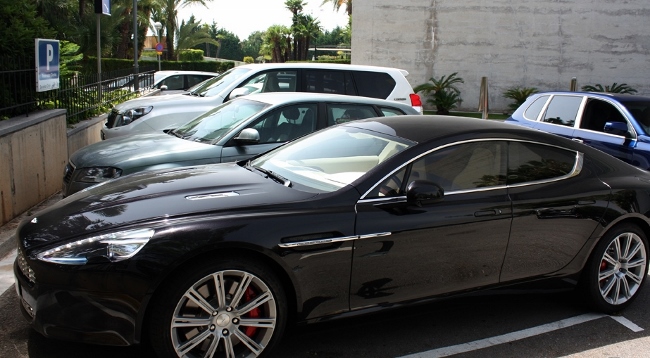 Aston Martin Rapide - แอสตัน มาร์ติน แรพพิด แม้ดูเป็นรถเก๋ง 4 ประตูทั่วไป แต่มันคือซูเปอร์คาร์ 4 ประตูสไตล์ท้ายลาด ด้วยพลังเครื่องยนต์เบนซิน วี12 สูบ 5.9 ลิตร 477 แรงม้า แรงบิด 600 นิวตันเมตรแบบเดิมๆ อัตราเร่ง 0 - 100 กม./ชม. ลากตัวถังหนัก 2,115 กก. ได้ใน 5.2 วินาที และความเร็วสูงสุด 310 กม./ชม. สบายๆ