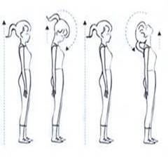 ท่าที่ 8 ยืนตัวตรง ก้มศีรษะลงให้คางจรดกับกลางกระดูกไหปลาร้า ค้างไว้ 5 วินาที เงยหน้าไปด้านหลัง พยายามให้ปลายคางตรง ค้างไว้ 5 วินาที