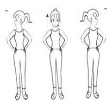 ท่าที่ 9 ยืนตัวตรง หันศีรษะไปทางซ้าย ค้างไว้ 5 วินาที แล้วหันกลับ หันศีรษะไปทางขวา ค้างไว้ 5 วินาที แล้วหันกลับ