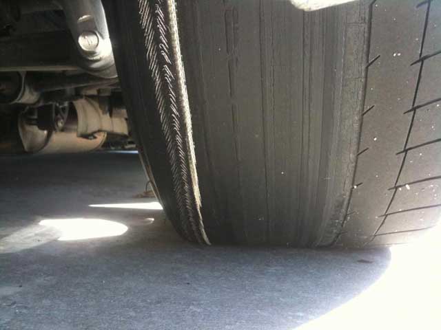 Camber ลบหรือยางส่วนบนเบนเข้ามากๆ การสึกหรอจะเป็นแบบนี้