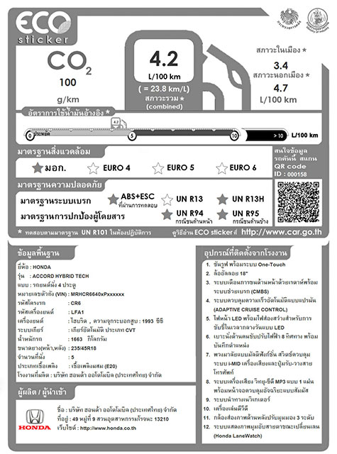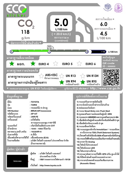 4. ประชาชนสามารถเลือกซื้อรถที่มีประสิทธิภาพด้านประหยัดพลังงานและลดปริมาณก๊าซเรือนกระจก โดยดูจากป้ายแสดงข้อมูลรถยนต์ (ECO STICKER)