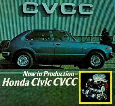 จุดกำเนิดของนวัตกรรมของ ฮอนด้า ซีวิค นั่นคือ การผลิตเครื่องยนต์ CVCC หรือ Compound Vortex Controlled Combustion รุ่นแรกที่ผ่านมาตรฐาน Muskie Act หรือกฎหมายควบคุมมลพิษในไอเสียที่เข้มงวดที่สุดในสหรัฐอเมริกา โดยออกแบบเพื่อให้เป็นรถยนต์ที่เป็นมิตรต่อสิ่งแวดล้อมและประหยัดน้ำมันมากที่สุด และนับเป็นครั้งแรกที่ฮอนด้า ซีวิค ได้พลิกโฉมประวัติศาสตร์การออกแบบรถยนต์คอมแพกต์ และกลายเป็นมาตรฐานสำหรับรถยนต์ทั่วโลก ด้วยการออกแบบที่มีลักษณะเป็นทรง 2 มิติ (Two-box Styling) เครื่องยนต์วางขวางด้านหน้าและขับเคลื่อนล้อหน้า นับเป็นครั้งแรกที่ขยายสายผลิตภัณฑ์ด้วยการใช้ระบบเกียร์อัตโนมัติ