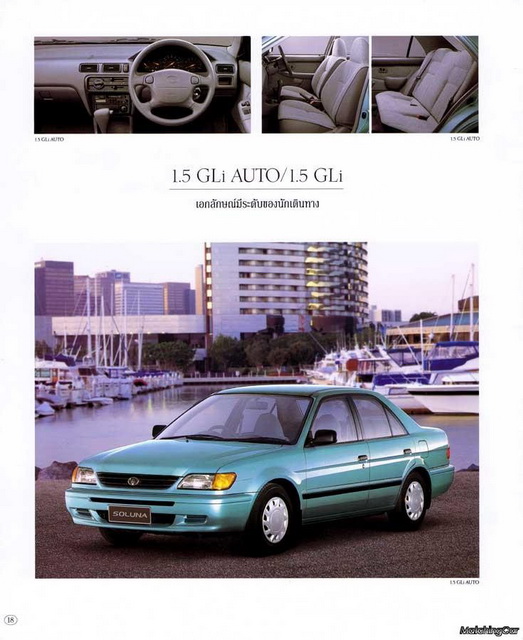 โตโยต้า โซลูน่า เป็นรถซีดานขนาดเล็กที่ทำตลาดในช่วงปี พ.ศ. 2540 - 2545 โดยสร้างความฮือฮานับตั้งแต่เปิดตัว ด้วยการทุบสถิติยอดจองในวันเปิดตัว 3 วัน 10,000 คัน แซงหน้ายอดจองของ Honda Civic 3 ประตู ในปี พ.ศ. 2536 ที่ 3 วันทำได้ 9,000 คัน และมีมรกต โกมลบุตรเป็นพรีเซ็นเตอร์ในช่วงแรก มีทั้งระบบเกียร์อัตโนมัติ 3 สปีดและเกียร์ธรรมดา 5 สปีด
