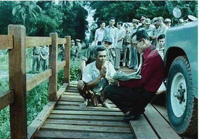 เหตุการณ์ในภาพนี้เกิดขึ้นเมื่อวันที่ 7 กันยายน 2524 พระบาทสมเด็จพระเจ้าอยู่หัวฯ ได้เสด็จพระราชดำเนินมาทรงงาน ณ บ้านเจาะบากง หมู่3 ตำบลปูโยะ อำเภอสุไหงโก-ลก จังหวัดนราธิวาส โดยมิได้นัดหมายให้ราษฎรในพื้นที่ทราบล่วงหน้า ในขณะนั้นชาวบ้านที่มีชาวไทยพุทธ และไทยมุสลิม กำลังทำนาอยู่ในพื้นที่ เมื่อได้ยินเสียงรถยนต์ของตำรวจทางหลวงนำขบวนเสด็จฯ ชาวบ้านในละแวกนั้นจึงวิ่งออกมารับเสด็จฯ ริมถนนเส้นทางเสด็จฯ รวมทั้งนายพร้อม จินนาบุตร ขณะนั้นมีอายุ 47 ปี (เสียชีวิตเมื่อปี 2555 ขณะอายุ78 ปี) ได้นั่งและยกมือกราบบังคมทูลพระบาทสมเด็จพระเจ้าอยู่หัวฯ พระองค์ทอดพระเนตรลุงพร้อม และทรงรับสั่งให้รถยนต์พระที่นั่งฯ หยุด แล้วทรงตรัสถามลุงพร้อมว่า "ที่นี่ที่ไหน" ลุงพร้อมตอบว่า "หมู่บ้านเจาะบากง" และพระองค์ทรงตรัสว่า "หมู่บ้านดังกล่าวไม่มีในแผนที่ มีแต่บ้านโคกกูโน และบ้านโคกกูยิ" ซึ่งหมู่บ้านทั้ง 2 แห่ง มีเขตติดต่อกับบ้านเจาะบากง ในระหว่างนั้นลุงพร้อม จึงได้เสนอขอพระราชทานให้มีการขุดคลองเชื่อมต่อคลองโต๊ะแดง หลังจากนั้นพระบาทสมเด็จพระเจ้าอยู่หัวฯ ได้เสด็จฯ ลงจากรถยนต์พระที่นั่งฯ แล้วเสด็จพระราชดำเนินไปที่สะพานไม้พร้อมกับลุงพร้อม เพื่อทอดพระเนตรสภาพพื้นที่เพื่อรับสั่งดำเนินการต่อไป นับเป็นภาพที่ประทับใจมากที่สุดอีกหนึ่งภาพ ในพระราชกรณียกิจของพระบาทสมเด็จพระเจ้าอยู่หัวฯ