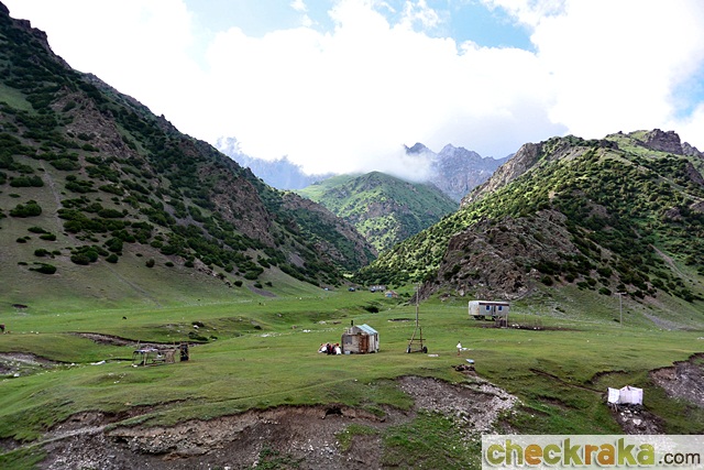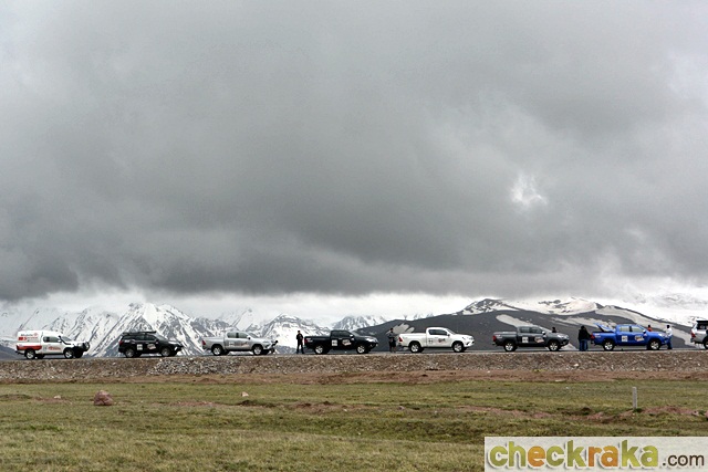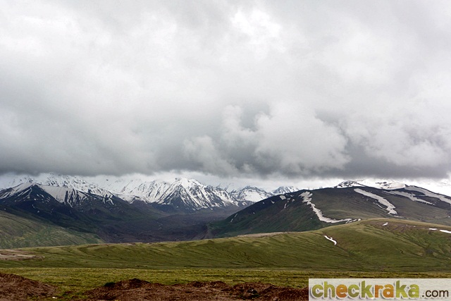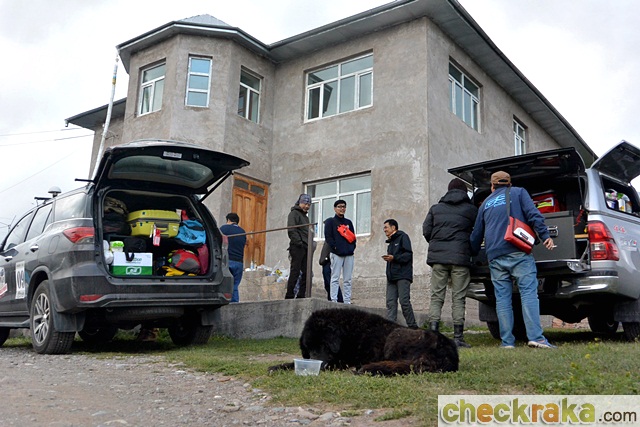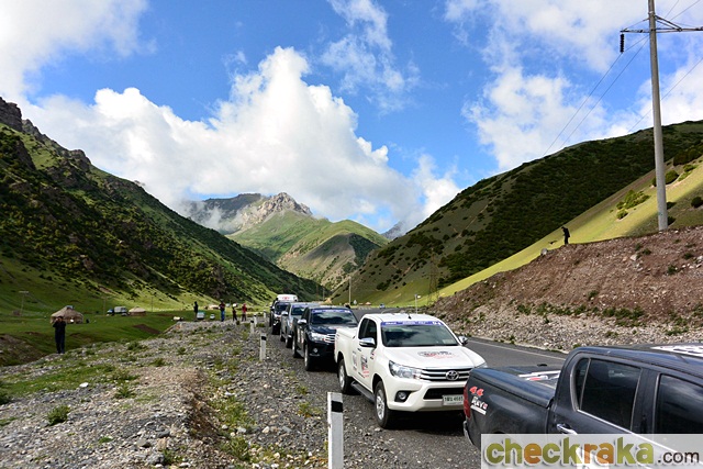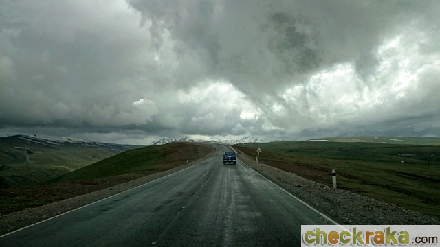 วันรุ่งขึ้นเราเดินทางกันแต่เช้าเพื่อขับข้ามแดนไปประเทศคีร์กีซสถาน เป็นการขับไต่ความสูงขึ้นไปเรื่อยๆ จนเริ่มสัมผัสถึงความเย็นได้ชัดเจน เหลือบมองอุณหภูมิที่หน้าปัดก็เริ่มลดต่ำกว่า 20 องศาเซลเซียส เมื่อถึงด่านตรวจตม. อยู่ก่อนชายแดน พวกเราก็ต้องลงจากรถพร้อมสัมภาระตามคำแนะนำของไกด์เพื่อตรวจและประทับตราออก หลังจากเรียบร้อยทุกคน ขบวนก็ออกเดินทางต่อ ทัศนียภาพสองข้างทางเปลี่ยนเป็นพื่นที่โล่งอีกครั้ง อุณหภูมิเริ่มลดลงจนเหลือ 11-13 องศาฯ