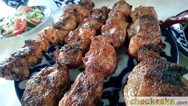 เช้าวันรุ่งขึ้นเราต้องอำลาสวรรค์เมืองสวย ซารี-แทช ลงไปสู่ออช (OSH) เมืองใหญ่สุดรองจากบิชเคกเมืองหลวงของคีร์กีซสถาน การขับลงจากซารี-แทช สวยไม่แพ้ขาขึ้นจากคัชการ์ นอกจากอากาศที่เย็นก็ได้เห็นธรรมชาติอันสวยงามดูมีชีวิตชีวามากขึ้น มีกระโจมอาศัยขนาดใหญ่ ปักกระจายหลายจุดตามเชิงเขา อยู่กันเป็นครอบครัว เห็นเด็กๆ ออกมาวิ่งเล่นกันสนุกสนาน บนพื้นมักเป็นหญ้าเขียวสั้นๆ ตัดกับฟ้าใสๆ ฝูงแกะก็มีกระจายตามเชิงเขาให้เห็นตลอด นับเป็นช่วงเวลาที่มหัศจรรย์มาก จนอยากพักแถวนี้ต่อ เมื่อลงไปที่ราบเพื่อเข้าสู่เมืองออช ผู้คนส่วนใหญ่เป็นมุสลิม และเป็นช่วงถือศีลอดทำให้ร้านอาหารส่วนมากไม่เปิดบริการ จึงต้องไปหาทานกันในโรงแรม โดยจอดพักรถไฮลักซ์ รีโว่ ไว้ที่โรงแรม ก่อนนั่งรถบัสเล็กที่เหมามารับ พาไปทานอาหารกลางวัน จากนั้นก็ไปเดินชมตลาดใกล้ๆ ซึ่งมีผลเชอร์รี่ต่างๆ มาขายมากมาย อร่อยและราคาถูกกว่าบ้านเรา ก่อนกลับโรงแรมยังได้แวะไปชมถ้ำสุไลมาน สถานที่ถูกยกให้เป็นมรดกโลก ภายในถ้ำมีแท่นหินศักดิ์สิทธิ์ซึ่งมีความสำคัญต่อชาวมุสลิม เมื่ออยู่ด้านบนแล้วมองลงมาก็เห็นเมืองออชยามเย็นในมุมกว้าง จากนั้นเรานั่งรถบัสแวะทานมื้อเย็นและกลับเข้าโรงแรมที่มีแต่คณะคาราวานเราเข้าพัก พร้อมเก็บแรงก่อนเผชิญภารกิจสำคัญขับข้ามแดนไปอุซเบกิสถานในวันรุ่งขึ้น
