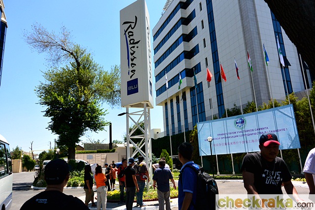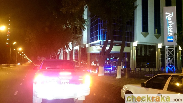 ถนนจากนี้เริ่มเป็นทางหลักทอดเข้าสู่ตัวเมือง พวกเราทำความเร็วชดเชยเต็มที่ เวลาบอกตีสามกว่าเราเริ่มเห็นแสงไฟของตัวเมืองที่อยู่ต่ำกว่าถนน ในใจคิดว่า ถึงเสียที แต่เมื่อได้ยินเสียงวิทยุสื่อสารแจ้งเข้ามาว่าเหลืออีก 100 กว่ากม. ผู้เขียนก็ได้แต่ถอนหายใจ นึกถึงตอนปั่นจักรยานทางไกล ในช่วงที่หมดพลังทุกอย่างแต่ต้องลากขาไปต่อ แม้ร่างกายย่ำแย่แต่รถไฮลักซ์ รีโว่ ในทริปไม่มีคันไหนงอแงให้เป็นภาระเลย จนในที่สุดขบวนทุกคันก็มาถึงโรงแรมเรดิสัน บลู ในเวลาตีสี่กว่าๆ ในใจนึกถึงแต่เตียงนอน แต่เมื่อถึงปากทางเข้าโรงแรม ก็ได้รับแจ้งว่าไม่ให้จอดด้านในเพราะมีการจัดประชุมเจ้าหน้าที่ระดับสูงในช่วงนี้ จึงต้องขับไปจอดริมถนนหน้าโรงแรม แล้วลากสัมภาระเข้าไปเอง เมื่อถึงหน้าประตูล็อบบี้เจ้าหน้าที่โรงแรมให้เราเปิดสัมภาระเพื่อตรวจค้น ช่างเป็นการส่งท้ายที่สุดแสนจะบรรยาย แต่ตรวจได้ไม่กี่คนก็เริ่มผ่อนปรนปล่อยคนหลังๆ คงเห็นสภาพเราแต่ละคนว่าอิดโรยแค่ไหน ผู้เขียนรับกุญแจแล้วขึ้นไปจัดมาม่าคัพเป็นอาหารเช้า เสร็จก็อาบน้ำ กว่าจะนอนก็เกือบ 6โมงเช้า พวกเรามีเวลานอนแค่ 3 ชั่วโมงกว่าๆ เพราะนัดเจอกัน 10 โมงเช้า แต่ส่วนใหญ่ก็ทยอยลงมา กว่าจะครบก็เที่ยงเราร่ำลาสมาชิกที่ต้องเดินทางไปอิหร่านต่อกับสมาชิกชุด 3 ที่กำลังบินมา ช่วงระหว่างรอเวลาไปสนามบินตอนหัวค่ำ ก็ได้โอกาสไปทัวร์เมืองทาชเคนต์ ซึ่งสวยงามทันสมัย ผู้เขียนชอบศาสนสถานของที่นี่ และสถาปัตยกรรมยุครัสเซียดูมีเสน่ห์มากๆ ถ้าเราได้พักร่างกายต่ออีกสักวันคงมีอารมณ์ชื่นชมอะไรได้มากกว่านี้ หลังจากมื้อเย็นเราได้เวลาไปสนามบิน ในใจยังล้ากับเหตุการณ์เมื่อคืนและคิดว่าพวกเราแกร่งมากที่สามารถผ่านเหตุการณ์แบบนั้นมาได้