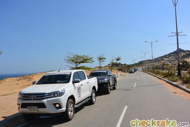 ทริปนี้เป็นคาราวานระยะทางไกลกว่า 3,400 กม. เน้นขับท่องเที่ยวทางไกลผ่านสภาพแวดล้อมและภูมิประเทศที่แตกต่างกัน โดยต้องขับกันทั้งวันตั้งแต่เช้า-ค่ำและต่อเนื่อง 10 วัน เป็นการทดสอบสมรรถนะรถไฮลักซ์ รีโว่ ไปด้วย จุดเริ่มต้นจากศาลาว่าการกรุงเทพมหานคร มุ่งสู่ บุรีรัมย์ ในวันแรก วันที่ 2 เราขับผ่าน อุบลราชธานี ข้ามแดนไปปากเซ-ลาว ช่วงนี้เส้นทางค่อนข้างลำบาก มีทางฝุ่นเยอะหลายช่วง และผิวถนนดินมักเป็นหลุม เราแวะชมปราสาทวัดภูและน้ำตกผาส้วม พร้อมขับผ่านโรงงานผลิตกาแฟดาว ที่ตอนนี้เข้ามาทำตลาดในบ้านเรา วันต่อมาเป็นการขับข้ามแดนไปเมืองยาลาย-เวียดนาม ทางส่วนใหญ่เป็นถนนเรียบขับง่าย แม้เส้นทางรอยต่อลาว-เวียดนามเป็นทางเขาเยอะ การควบคุมเข้า-ออกโค้ง เร่งขึ้น และเบาเบรก ทำได้ดี ขบวนฯ คาราวานสามารถตามกันได้ตลอด แม้เหนื่อยล้าแต่ก็สนุกเพราะได้ขับลุยเต็มที่