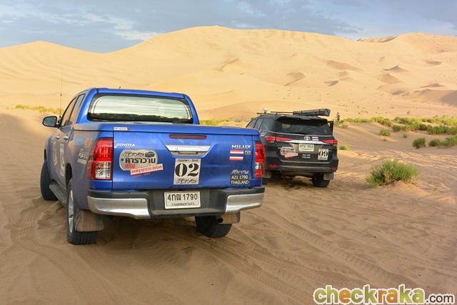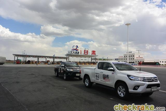 หลังจากบินมาถึงปักกิ่งแล้วเปลี่ยนเครื่องมาลงตุนหวง สมาชิกคาราวานชุด 2 รวมถึงผู้เขียนมาถึงสนามบินตุนหวงในช่วงสาย ประเดิมความร้อน ลมทราย และแสงแดดตั้งแต่วันแรก โดยนั่งรถบัสไปโรงแรมเพื่อทานอาหารกลางวันและรอสมาชิกกลุ่มแรกขับรถโตโยต้า ไฮลักซ์ รีโว่มาสมทบ พร้อมทัวร์เมืองตุนหวงด้วยกัน ไฮไลท์สถานที่เที่ยวก็มี ทะเลทรายหมิงซาซาน และถ่ำม่อเกาคู แม้ตุนหวงจะอยู่ตอนตะวันตกเฉียงเหนือของจีนและไม่ค่อยมีใครพูดถึงแต่ก็มีนักท่องเที่ยวไทยเดินทางมากันตลอด วันที่เราไปก็ได้พบกับทัวร์คนไทยด้วย ในช่วงเย็นผู้เขียนกับสมาชิกบางส่วนและทีมงานได้ออกไปทดสอบสมรรถนะ ไฮลักซ์ รีโว่ ในทะเลทรายหมิงซาซาน โดยขับบุกตะลุยทรายอย่างสนุก นับเป็นการวอร์มอัพผู้ขับกับตัวรถจริง ก่อนที่การเดินทางจริงจะเริ่มในวันรุ่งขึ้น