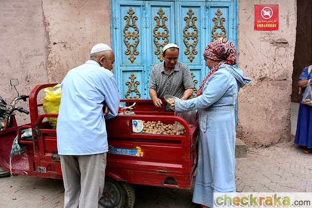 วันต่อมาเป็นการเดินทางสู่คัชการ์เมืองใกล้ชายแดนจีนฝั่งตะวันตกติดกับประเทศคีร์กีซสถาน เป็นเมืองที่มีสถานการณ์บอบบางด้านความมั่นคง ช่วงกลางคืนเราออกไปเดินท่องเมือง สังเกตเห็นทหาร ตำรวจ กระจายอยู่เยอะมาก คอยตั้งด่าน และเดินตรวจตรากันอย่างเข้มงวด การที่เมืองแห่งนี้อยู่สูงกว่าที่ผ่านมา ทำให้อุณหภูมิลดลงอยู่ระดับ 20 กว่าองศา เราถือโอกาสพักเมืองนี้ 2 คืน เพราะถึงระยะเช็คและซ่อมบำรุงรถ วันรุ่งขึ้นพวกเราจึงเช่ารถบัสไว้ท่องเมืองกัน จากภาพรวมเป็นเมืองที่ดูแตกต่างจากหลายเมืองในประเทศจีน เพราะที่นี่มีภาษาและเวลาของเขาเอง ผู้คนส่วนมากในเมืองเป็นเชื้อสายอุยกูร์ และคนจีนที่เห็นมักเป็นนักท่องเที่ยวหรือเจ้าหน้าที่รัฐมากกว่า แหล่งท่องเที่ยวที่ขึ้นชื่อคือ เมืองเก่าดั้งเดิม และเมืองเก่าที่สร้างใหม่ ซึ่งพวกเราได้มีโอกาสไปเดินทั้งตลาดและเมืองเก่า ได้เห็นวิถีชีวิตของผู้คนที่นี่ บรรยากาศของเมืองคัชการ์ดูแตกต่างจากเมืองที่ผ่านมา จนคิดว่าที่นี่เป็นอีกประเทศ มีเพียงอนุสาวรีย์ท่านประธานเหมาที่ตอกย้ำว่าที่นี่คือ ผืนแผ่นดินจีน