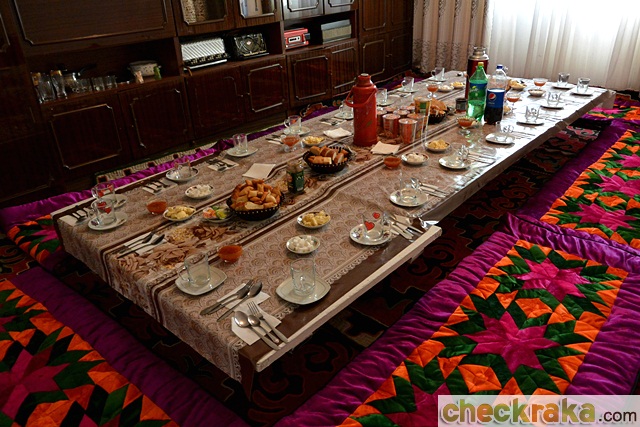 เรามาเจออุปสรรคใหญ่อีกครั้ง หนนี้เป็นด่านทหารช่วงใกล้ประเทศทาจิกิสถาน พวกเราโดนเรียกให้ไปจอดในพื้นที่ควบคุม และทยอยลงเอาพาสปอร์ตมาตรวจละเอียดรายคน แค่รอเข้าแถวถึงคิวตรวจก็ใช้เวลาไปเกือบชั่วโมง นาฬิกาตอนนั้นบอกเวลาตีสองกว่าๆ ในใจคิดว่า คืนนี้มันช่างยาวนานเหลือเกิน กว่าทุกคนได้กลับขึ้นรถก็แทบสลบเพราะทั้งเหนื่อยและง่วงนอน