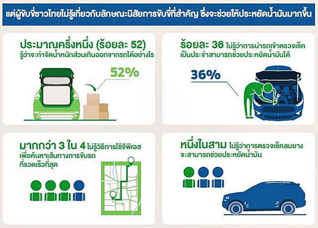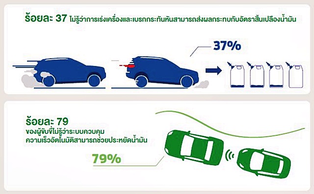 ร้อยละ 37 ของผู้ขับขี่ไม่รู้ว่า การเร่งเครื่องและเบรกกะทันหันสามารถส่งผลกระทบกับอัตราสิ้นเปลืองน้ำมัน