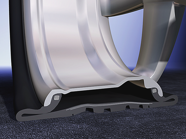 ยางแบบ Runflat จะมีแก้มยางคอยพยุงเอาไว้