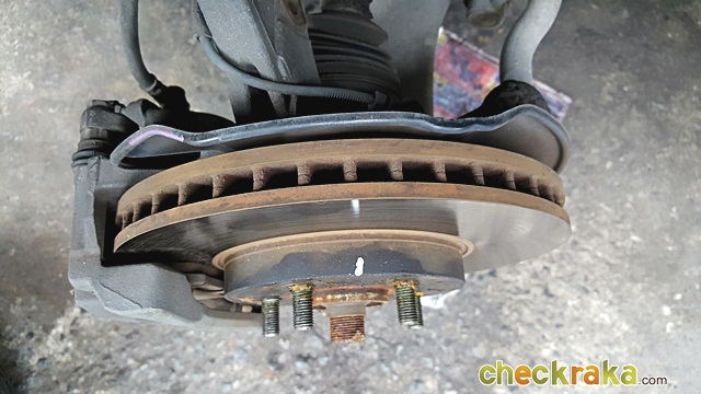 ระบบเบรกรั่วอาจเกิดจากสายเบรกบริเวณคาลิปเปอร์เบรกหน้า