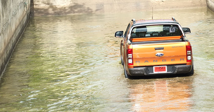 ไม่ต้องกลัว! เมื่อจำเป็นต้องขับรถลุยน้ำท่วม รถยนต์ทุกคันสามารถลุยน้ำได้ในระดับที่ไม่สูงนัก หรือในระดับที่ไม่เกินครึ่งล้อรถโดยประมาณ โดยที่เครื่องยนต์ไม่ดับ เพราะท่อดักอากาศเข้ารถยนต์ส่วนมากมักอยู่สูงระดับฝากระโปรง และท่อไอเสียมีแรงดันจากเครื่องยนต์คอยดันออกตลอดเวลา แต่ถึงอย่างนั้น การขับรถลุยน้ำก็มีวิธีปฎิบัติเล็กๆ น้อยๆ มาดู 4 ขั้นตอนง่ายๆ ที่ควรปฏิบัติให้ถูกต้องเมื่อต้องขับลุยน้ำกันครับ