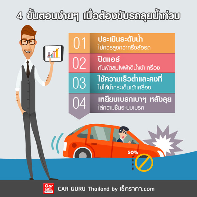 4 ขั้นตอนง่ายๆ เมื่อต้องขับรถลุยน้ำท่วม
