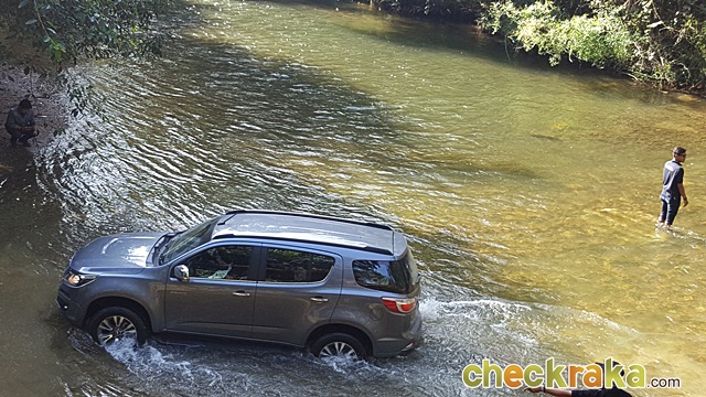 เมื่อถึงจุดต้องลุยน้ำ ควรใช้ความเร็วต่ำจนเกือบจะเดินเบา หรือปล่อยให้เครื่องยนต์ไหลไปเองโดยที่ค่อยๆ เดินคันเร่งช้าๆ และให้ความเร็วอยู่ในระดับคงที่มากที่สุด การช่วยเร่งก็เพื่อให้มีแรงดันไอเสียออกที่ท่อไอเสีย ป้องกันน้ำไหลย้อนกลับเข้าปลายท่อ การใช้ความเร็วต่ำๆ และคงที่ช่วยให้น้ำไม่กระเด็นขึ้นมาถูกชิ้นส่วนสำคัญภายในห้องเครื่องยนต์ นอกจากนี้ยังช่วยให้ความร้อนเครื่องยนต์ไม่สูงเกินไป ซึ่งลดการทำงานพัดลมไฟฟ้าของเครื่องยนต์ และช่วยป้องกันพัดลมไฟฟ้าตีน้ำกระเด็นถูกเครื่องยนต์และป้องกันใบพัดเสียหายได้อีกทางด้วย