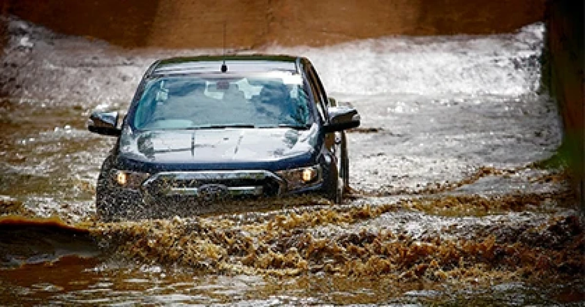 อย่าพยายามขับรถผ่านบริเวณน้ำท่วมในระดับที่คุณไม่สามารถเดินผ่านได้ และระวังจุดที่น้ำท่วมขังอยู่บนพื้นถนน หากน้ำเข้าไปยังวาล์วไอดีและเครื่องยนต์ รถอาจจะดับ และคุณจะติดอยู่ในรถ