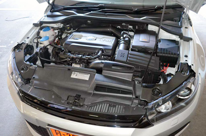 เครื่องยนต์แบบเบนซิน 4 สูบแถวเรียง DOHC 16 วาล์ว 1,984 ซีซี พร้อมเทอร์โบจาก BorgWarner รุ่น K03 ให้แรงม้าสูงสุด 210 แรงม้า ที่ 5,100-6,000 รอบ/นาที แรงบิดสูงสุด 280 นิวตัน-เมตร (28.5 กก.-ม.) ที่ 1,700-5,000 รอบ/นาที ถ่ายทอดกำลังสู่ล้อหน้าด้วยระบบเกียร์อัตโนมัติแบบ DSG 6 จังหวะแบบคลัตช์คู่ สามารถเปลี่ยนเกียร์ได้รวดเร็วฉับไวกว่าเกียร์ธรรมดาซะอีก (ที่เมืองนอกยังมีรุ่นเกียร์ธรรมดา 6 สปีดให้เลือกอีกด้วย)