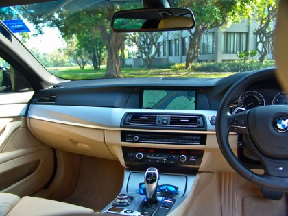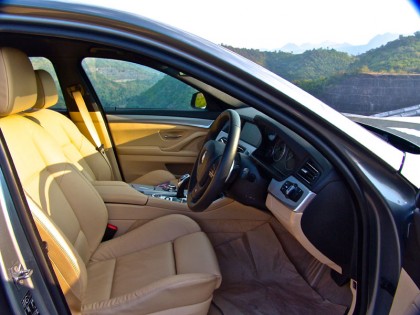 ภายในห้องโดยสารคือ จุดเด่นของ BMW โดยเฉพาะ Series 5 F10 มันดูดีขึ้นกว่ารุ่นเก่าอย่าง E60 คอนโซลออกแบบให้มีความกลมกลืนและโค้งมนมากยิ่งขึ้นเพื่อการใช้งาน โดยมีตำแหน่งคนขับเป็นจุดศูนย์กลางของการใช้อุปกรณ์ คอนโซลเอียงเข้าหาคนขับตามลักษณะของ BMW รูปแบบของคอนโซลในฝั่งคนขับและผู้โดยสารตอนหน้ายังแตกต่างกันด้วยการบุหนัง ให้เฉพาะด้านคนขับ ให้ความรู้สึกที่โอบรัด พลาสติกเกรดดีประดับประดาอยู่ทั่วห้องโดยสาร รวมทั้งงานอัลลอย Aluminum Hexagon คุณภาพสูงในบริเวณแผงประตู มือจับที่เปิดประตู ซุ้มเกียร์ คอนโซลกลางในรุ่น 528i M-Sport ยังคาดกลางด้วยชิ้นงานอัลลอยลายเกล็ดงูที่งดงามประณีต เบาะคู่หน้าปรับด้วยไฟฟ้า พร้อมหน่วยความจำสามระดับ (สำหรับเบาะคนขับ) ส่วนวัสดุพิเศษในรุ่น M Sport Package ประกอบไปด้วยพวงมาลัยสปอร์ต 3 ก้านของ M กาบบันได M ล้ออัลลอย 18 นิ้ว M Double Spoke 350 M และสปอยเลอร์หน้า-หลังทรงเดียวกันกับ BMW M5