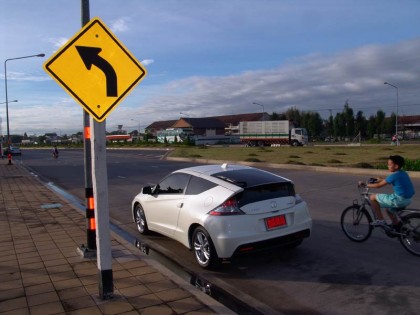 โหมด Sport ที่ปรับให้คันเร่งตอบสนองแบบบ้าคลั่ง ผสานการทำงานของมอเตอร์ไฟฟ้าแบบต่อเนื่อง เพิ่มน้ำหนักของพวงมาลัยให้เหมาะสมกับความเร็ว มันให้ความแตกต่างอย่างชัดเจนและสามารถสร้างความประทับใจชนิดไม่รู้ลืม นี่คือรถ Honda อีกคันที่แสดงให้เห็นถึงอรรถรสของการควบคุมบนความเฉื่อยชาหรือรีบเร่ง โช้คและสปริงที่กระด้างของ CRZ ยังส่งถ่ายอารมณ์การซิ่งได้แจ๋วพอๆ กับ MINI Cooper แต่เป็น Cooper ที่หอมกลิ่นอันเผ็ดร้อนของวาซาบิ มันเจ๋งและมีความเป็นตัวตนสูงจากรูปทรง ขับขี่ได้ดีสวนทางกับระบบ Hybrid ที่เหมือนอยู่ผิดที่ผิดทาง หากนำมันไปโมโดยสำนักแต่งดังของแดนปลาดิบ รถชาติของม้า 200 ตัว กับช่วงล่างสปอร์ตและแอร์โรพาร์ตเต็มระบบจะทำให้ CRZ น่ากลัวมากในกลุ่มรถแฮตซ์แบ็กสมรรถนะสูง บนทางโล่งๆ ที่เชื่อมระหว่างตะเข็บรอยต่อของจังหวัดจันทบุรีกับจังหวัดตราด เมื่อผมลองเปิดกระจกในโหมด Sport เพื่อฟังเสียงการทำงานของเครื่องยนต์ในรอบสูง ที่ย่าน 6,000 รอบต่อนาที เสียงท่อไอเสียดังสนั่นไปทั่วและให้สุ้มเสียงราวกับ Civic Type R อัตราเร่ง 0-100 กิโลเมตรที่ 10.02 วินาที ดูไม่ค่อยจะจริงจังนักเมื่อมันค่อนข้างขัดแย้งกับเรือนร่างแบบสปอร์ต และคงต้องรอกันอีกสักนิดกับรุ่น CR-Z Type R ที่ร้อนแรงกว่ามาก โดยรถรุ่นดังกล่าวจะเข้ามาเติมแต่งสมรรถนะให้แจ่มมากยิ่งขึ้นภายในปี 2013 นี้