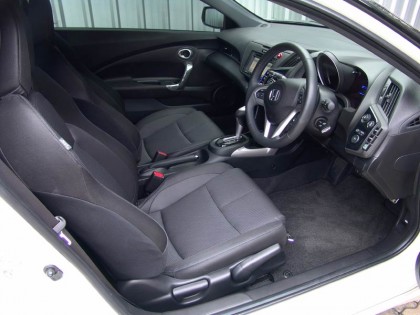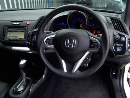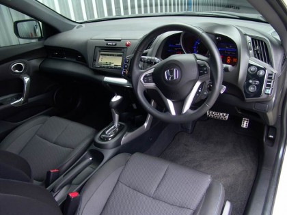 Cockpit ของ Honda CRZ ออกแบบในแนวทางล้ำอนาคต รูปแบบคอนโซลสันเหลี่ยมจัดวางอุปกรณ์ได้แหวกแนว ช่องแอร์สี่เหลี่ยมเข้ากันได้ดีกับช่องกลมของมาตรวัดรอบแบบเรืองแสง พร้อมจอแสดงผลของระบบต่างๆ Multi Information Display สวิตช์ปรับโหมดการขับสามรูปแบบที่มีแถบเรืองแสงสีฟ้าอยู่ภายใน มาตรวัดความเร็วซ้อนทับอยู่ตรงใจกลางของมาตรวัดรอบเครื่องยนต์ แจ้งความเร็วแบบดิจิตอลด้วยตัวเลขที่คมชัด และอ่านค่าได้ง่าย ปุ่มควบคุมอุณหภูมิ ปุ่มปรับความเร็วของพัดลมภายในห้องโดยสาร การสตาร์ตเครื่องยนต์ใช้กุญแจเสียบแล้วบิดแทนที่จะเป็นสวิตช์ Start -Stop On-Off เหมือน CRZ ที่วางขายในยุโรป เบาะนั่งห่อหุ้มด้วยผ้าสีดำ เดินตะเข็บด้วยด้ายสีฟ้าโทน Hybrid ให้อารมณ์สปอร์ตแบบเต็มพิกัด แต่คนรูปร่างใหญ่คงต้องพบกับความอึดอัด เนื่องจากความกระชับของตัวเบาะที่บีบรัดด้านข้าง เบาะปรับด้วยมือโดยไม่มีระบบปรับด้วยมอเตอร์ไฟฟ้า คอนโซลกลาง วางจอมัลติฟังก์ชั่นของระบบเครื่องเสียง ระบบนำทางและกำหนดพิกัดด้วยดาวเทียม ใช้งานผ่านเมนูภาษาไทย ส่วนซุ้มเกียร์ออโต้ไฟฟ้า CVT อัตราทดแปรผัน มีคันเกียร์หน้าตาแปลกๆ กับช่องวางแก้วและคันเบรกมือที่อยู่ใกล้กับมือซ้ายของคนขับ