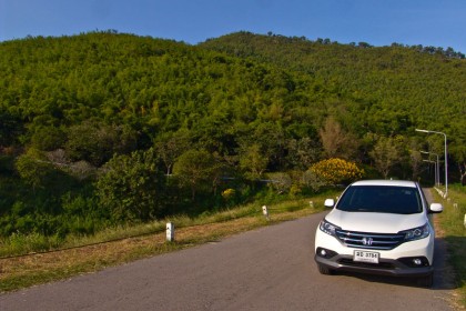 จังหวัดเพชรบุรีทางทิศตะวันตกมีเส้นทางที่สงบและสวยงาม ภูเขาและโค้งยาวๆ ที่ทอดตัวสลับไปบนทางลาดยางมะตอย วิวทิวทัศน์สองข้างทางที่เต็มไปด้วยต้นไม้ขนาดใหญ่ หุบเขาสลับซับซ้อนกับพื้นที่ราบลุ่มไกลสุดสายตา ผมมักใช้ความเร็วต่ำเมื่อนำรถทดสอบมาเก็บภาพในแถบนี้เนื่องจากความเงียบสงบไม่พลุกพล่านเหมือนจังหวัดชลบุรีที่มีผู้คนใช้ทางเยอะกว่า รถทดสอบ Honda New CRV 2.4 EL 4WD เหมาะสมมากกับพื้นที่ในแถบนี้และมันเองก็ทำตัวได้อย่างกลมกลืนจากประสิทธิภาพของการขับขี่ทางไกล บนการทำงานของเครื่องยนต์ เกียร์ ช่วงล่างและพวงมาลัยที่ทำให้คุณเพลิดเพลินไปกับการขับขี่และย่านของกำลังในรุ่นสูงสุดหากไม่แคร์เรื่องอัตราสิ้นเปลืองมากจนเกินไป เบาะออกแบบมาเพื่อทำให้ไม่รู้สึกเมื่อยล้าตลอดการเดินทางจากตำแหน่งท่านั่งที่สบายรวมกับขนาดที่ใหญ่ขึ้นทั้งตัวเบาะและพนักพิง ยาง Dunlop รุ่น Sport Maxx ไซส์ 225/60/R18 ก็ทำหน้าที่ได้ดีสำหรับการยึดเกาะไปกับผิวถนน ส่วนการเก็บเสียงใน New CRV ทำได้ในระดับที่น่าพอใจ แม้ที่ย่านความเร็ว 140-160 กิโลเมตรต่อชั่วโมงจะมีเสียงของยางที่บดไปกับผิวถนนดังลอดเข้ามาให้ได้ยินแต่ก็ถือว่าอยู่ในค่าปกติของรถทั่วไป แต่ที่ความเร็วต่ำ มันมีการป้องกันเสียงแปลกปลอมจากภายนอกได้ดีจนน่าพอใจ