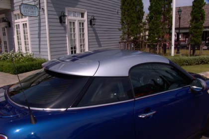 MINI Cooper SD Coupe มีหลังคาทรงประหลาดคล้ายเด็กใส่หมวกแบบกลับหลัง มันคือสัญลักษณ์อันโดดเด่นที่แตกต่างไปจากรุ่นปกติ หลังคาแบบค็อกพิตนักบิน ให้ความรู้สึกที่แปลกแยกระคนดึงดูดสายตาของผู้คนรอบข้าง กระจกหน้าและหลังเอนในองศาที่มากกว่าปกติกับหลังคาสีเงินคาดสติกเกอร์สีน้ำ ทะเล สัดส่วนที่สั้นกุดของบั้นท้าย ล้อทั้งหน้าและหลังถูกดันออกไปจนสุดมุมตัวถังด้านข้างแบบไม่สมมาตร มันประหลาดและให้อารมณ์ที่แตกต่างไปจาก Audi TT / VW Scirocco / Toyota GT86 - Subaru BRZ / Mazda MX-5 กระเปาะด้านบนหลังพนักพิงศีรษะจะทำให้คุณเผลอนึกไปว่ากำลังนั่งอยู่ใน เครื่องบินขับไล่โจมตีที่พร้อมรบชนิดเต็มอัตรา
