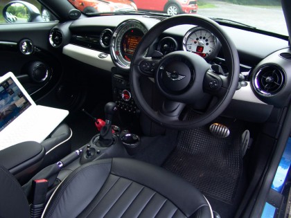คันเร่งไฟฟ้าให้ความรู้สึกไม่แตกต่างไปจาก Series-3 รุ่นเครื่องยนต์ดีเซล 2.0 ลิตร อาการรอรอบปรากฏขึ้นเพียงนิดเดียวเมื่อกดคันเร่งจนสุด ผมต้องขืนพวงมาลัยให้ดีหากออกตัวจากจุดหยุดนิ่งด้วยโหมดสปอร์ตกับการจมคัน เร่งจนมิด แรงดึงในโหมดปกติที่สนุกอยู่แล้ว กลับกลายเป็นมากจนล้นในโหมดสปอร์ต ทุกอย่างจะไวขึ้นจนทำให้แปลกใจกันไปเลยทีเดียว แรงบิดรอบต่ำที่เหนือกว่ารุ่นเครื่องยนต์เบนซินทำให้การเร่งความเร็วในช่วง ต้นๆ แทบจะไม่แตกต่างกันเลยแม้แต่น้อย แต่สิ่งที่ต่างกันก็คืออัตราสิ้นเปลืองเชื่อเพลิงของรุ่นดีเซลจะน้อยกว่า เห็นๆ ฐานล้อของรถรุ่นนี้เท่ากันพอดีกับรุ่นหลังคาปกติ ช่วงล่างด้านหน้าแบบแมคฟอร์สัน สตรัท สปริง โช้คอัพและเหล็กกันโคลงเส้นเขื่อง ส่วนระบบรองรับด้านหลังเป็นแบบมัลติลิงก์ บนทางตรงยาวของมอเตอร์เวย์ มันทำงานได้อย่างสมบูรณ์เมื่อถูกรองรับด้วยยาง Bridgestone Potenza RE060 แม้จะกระด้างสุดๆ และมีความเสียวสยองอย่างแรงเมื่อตกหลุม แต่สัมผัสของแรงยึดเกาะผสมกับพวงมาลัยที่ค่อนข้างเที่ยงตรง กลายเป็นสูตรสำเร็จบนพัฒนาการของค่ายใบพัดสีฟ้าขาว ที่ทำให้ MINI ยุคใหม่ภายใต้ร่มธงของ BMW กลับมามีชีวิตชีวาอีกครั้ง