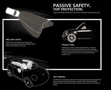 MINI ภายใต้ร่มธงของ BMW มีความยาวขึ้น 23 นิ้ว กว้างขึ้นอีก 11 นิ้ว และมีความสูงเพิ่มขึ้น 2.8 นิ้ว เรือนร่างที่โตขึ้นในทุกสัดส่วนแต่ยังคงสไตล์และรูปแบบความเป็นตัวตนของมัน เอาไว้อย่างเหนียวแน่น ส่งผลให้ยอดขายดีขึ้นจากที่เคยขาดทุนอย่างย่อยยับในปี 1994-2000 ภายใต้การบริหารงานของบริษัท Rover หลังจากนั้น ทุกสิ่งเริ่มดีขึ้นเมื่อค่ายใบพัดสีฟ้าเข้ามาซื้อกิจการทั้งหมดต่อจาก Rover ทุกชิ้นส่วนที่พัฒนาขึ้นโดย BMW ถูกเริ่มต้นขึ้นในปี 2001 และไม่มีชิ้นส่วนเดิมแม้แต่ชิ้นเดียวจากการออกแบบก่อนขึ้นสู่สายการผลิต รถ MINI ในยุคใหม่มีทุกอย่างเท่าที่รถยนต์ในระดับพรีเมียมพึงมี มันมีเครื่องยนต์ขนาดเล็กที่ทรงประสิทธิภาพของ BMW ทั้งเครื่องเบนซินและดีเซล พร้อมระบบอัดอากาศทั้งซุปเปอร์ชาร์จและเทอร์โบแปรผัน รวมถึงมอเตอร์ไฟฟ้าในรุ่น MINI-E มีระบบความปลอดภัยที่ดีทั้งโครงสร้างและถุงลมนิรภัย กับระบบช่วยทรงตัวที่ก้าวหน้า มันคือการรวบรวมเอาจุดเด่นของรถ BMW ขนาดเล็กมารวมไว้ในตัวรถแทบจะทุกจุด และมอบการขับขี่ที่สนุกสนานให้กับเจ้าของรถทันทีที่เครื่องยนต์ถูกสตาร์ต