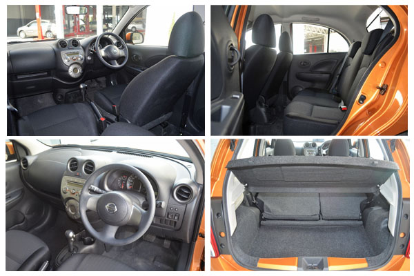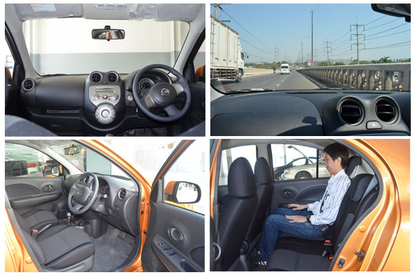 นิสสัน มาร์ช มีจุดเด่นที่ขนาดตัวรถเล็ก แต่ภายในกว้างเหลือเชื่อตามแบบฉบับของนิสสันที่เน้นกว้างนั่งสบาย มิติตัวถังยาว 3,780-3,800 มม. กว้าง 1,665 มม. สูง 1,515 มม. ระยะฐานล้อ 2,450 มม. ทำไม่ต้องบอกขนาดรถ? ก็เอาไว้เทียบกับรุ่นอื่นเพื่อประกอบการตัดสินใจครับ รวมๆ แล้วรูปร่างน่ารัก น่าหลงใหล ไฟหน้ามัลติรีเฟลตเตอร์ขนาดใหญ่สว่างทั่วถึงแม้ขับทางไกล กระจังหน้าและช่องดักลมโครเมียม มือจับประตูคู่หน้าและกระโปรงท้ายแบบกดปุ่มเปิดล็อคไม่มีรูกุญแจ ด้านหลังติดตั้งสปอยเลอร์ ไฟเบรกดวงที่ 3 และใบปัดน้ำฝน เซ็นเซอร์ถอยหลัง 4 จุด กระจกข้างพับไฟฟ้าเมื่อล็อคประตู ระบบกุญแจ Intelligent Key พร้อม Immobilizer ล้อแม็กลาย 7 ก้าน 15 นิ้ว ยางดันลอปขนาด 175/60 และช่วงล่างที่ใว้ใจได้ในรถระดับนี้ ภายในเด่นด้วยปุ่มกดสตาร์ต-ดับเครื่องยนต์ แอร์อัตโนมัติ จอแสดงผลอัตราสิ้นเปลือง เบาะหลังพับได้ 60:40 เครื่องเสียงพร้อมช่องเชื่อมต่อ AUX-IN ถุงลมคู่หน้า เครื่องยนต์ 3 สูบ เดินนิ่งที่แสนประหยัด พร้อมเกียร์ CVT เปลี่ยนนุ่มและต่อเนื่อง